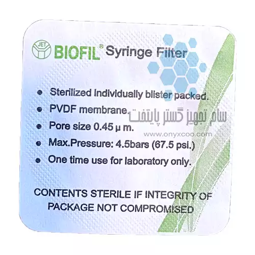 این فیلتر از نوع غشایی PVDF می باشد. طول آن 30 میلی متر و اندازه منافذش 0.45 میکرومتر است. همچنین به صورت تک تک استریل شده اند و غیر تب زا می باشند. این فیلترهای در بسته های ۴۵ عددی عرضه می شوند. از ویژگی های مهم فیلترهای کمپانی JET BIOFILقیمت مناسب آن ها بر خلاف کیفیت بسیار بالای آن ها است.